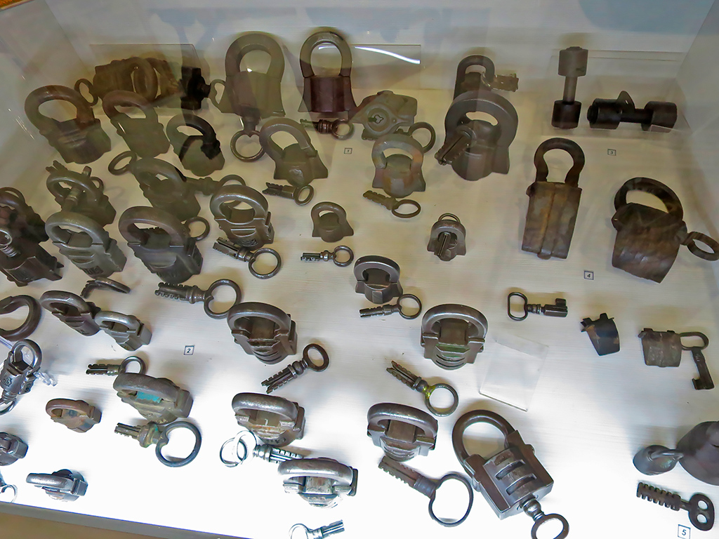 Предметы музея найдены при раскопках около Дубны или привезены из разных регионов России. Среди экспонатов выделяются замок-символ с монограммой Николая I, деревянная задвижка, римский кольцевой ключ I–III веков н. э., фигурные замочки-животные и хитроумные замки с секретом, включая тюремные ключи XVIII века.